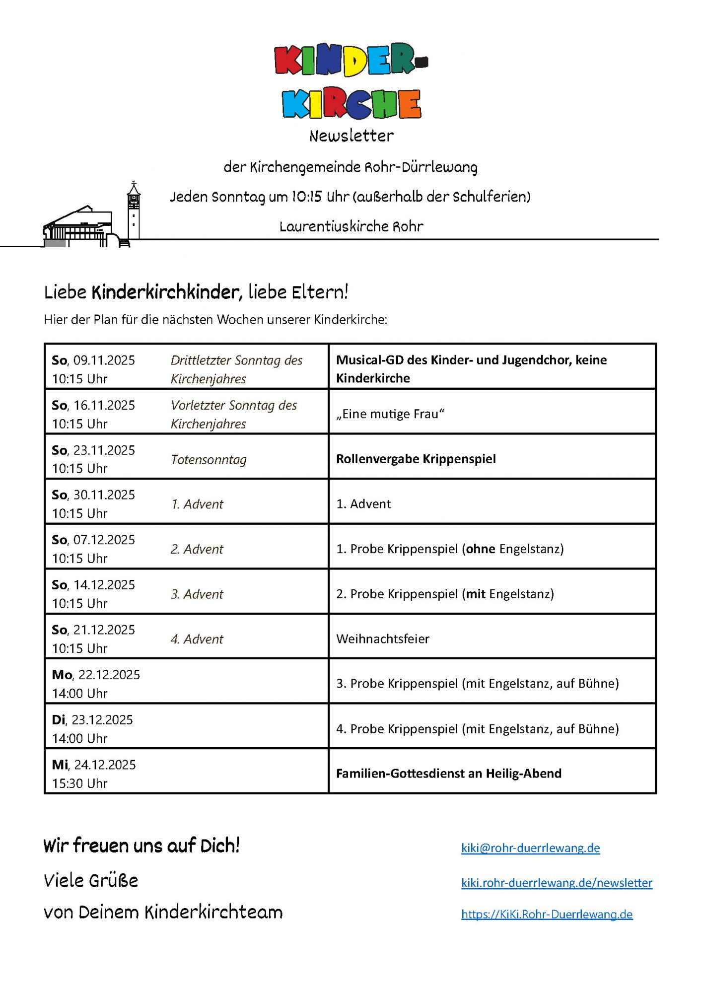Schulferien in Laurentius (10.15 Uhr) vorbehaltlich dessen, dass das Kinderkirchteam eine andere Festlegung trifft