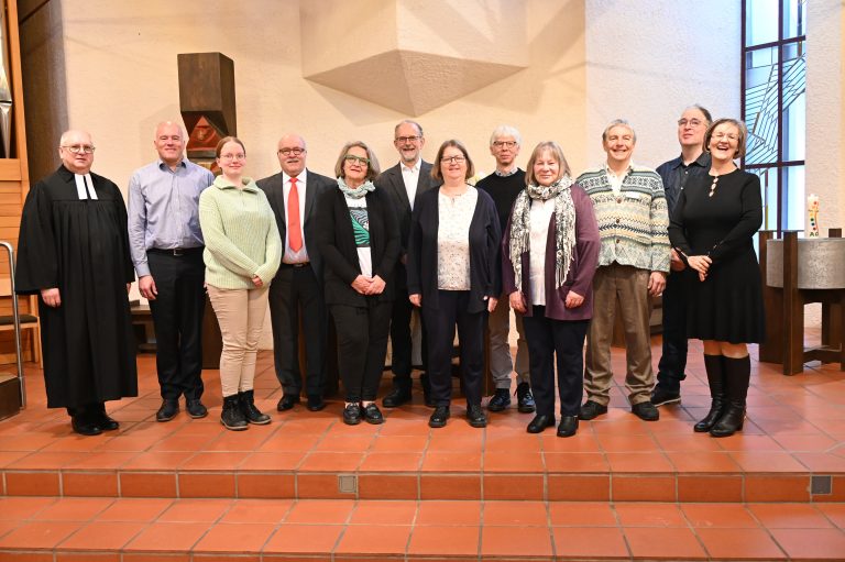 Von links nach rechts: Pfarrer Hans-Ulrich Lebherz, Johannes Burkhardt, Jenny Berger, Michael Püngel, Sabine Vedder, Eberhard Birkert, Simone Hungerbühler, Dr. Tilmann Ludwig, Ute Sieglen, Thomas Binder-Leube, Christian Unruh, Kathrin Degenhardt